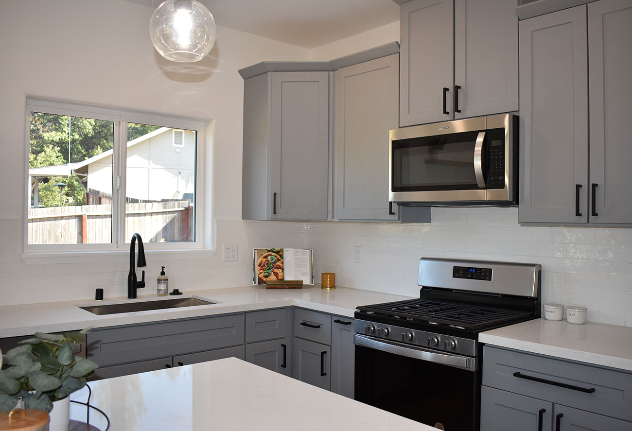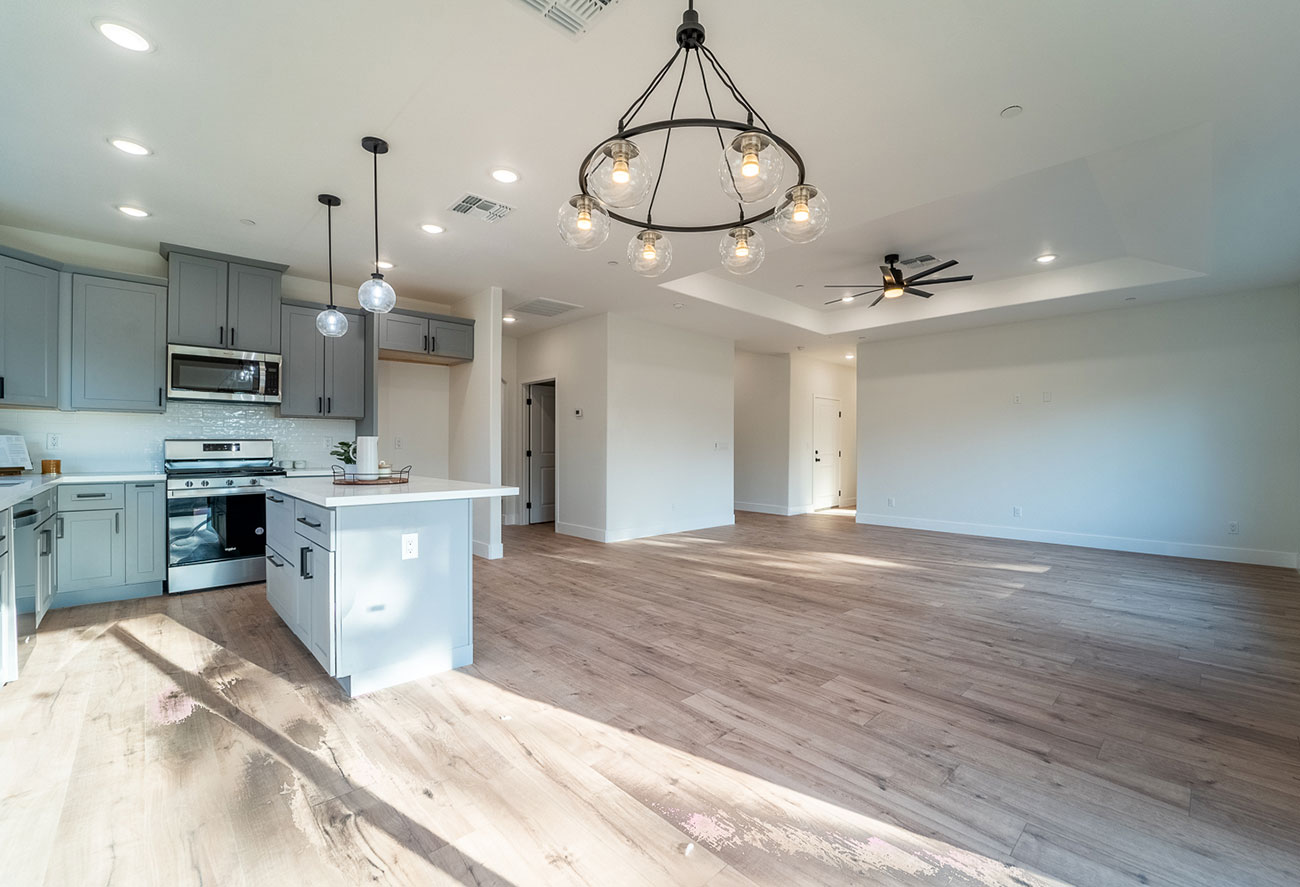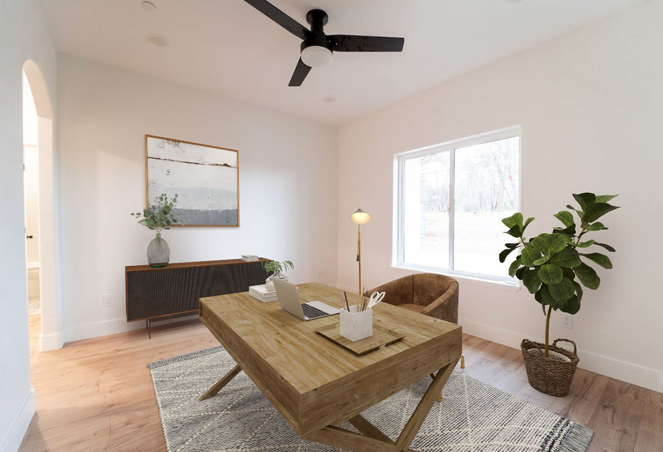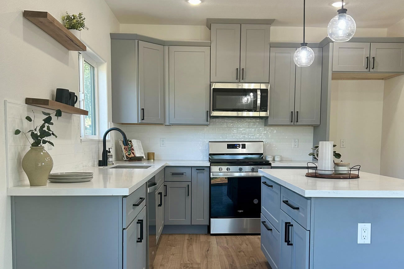 This new construction home in Paradise was built as part of the community’s ongoing recovery after the Camp Fire. Designed on a budget without sacrificing quality, the home features an open floor plan with three bedrooms, two bathrooms, and an oversized garage on a half‑acre lot. The open layout emphasizes comfort and efficiency.